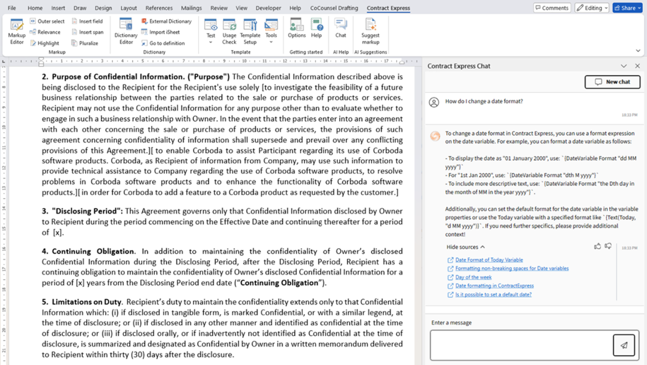 - Use standard legal mark-up and drafting notes to shape guided drafting experiences that walk users through each step.