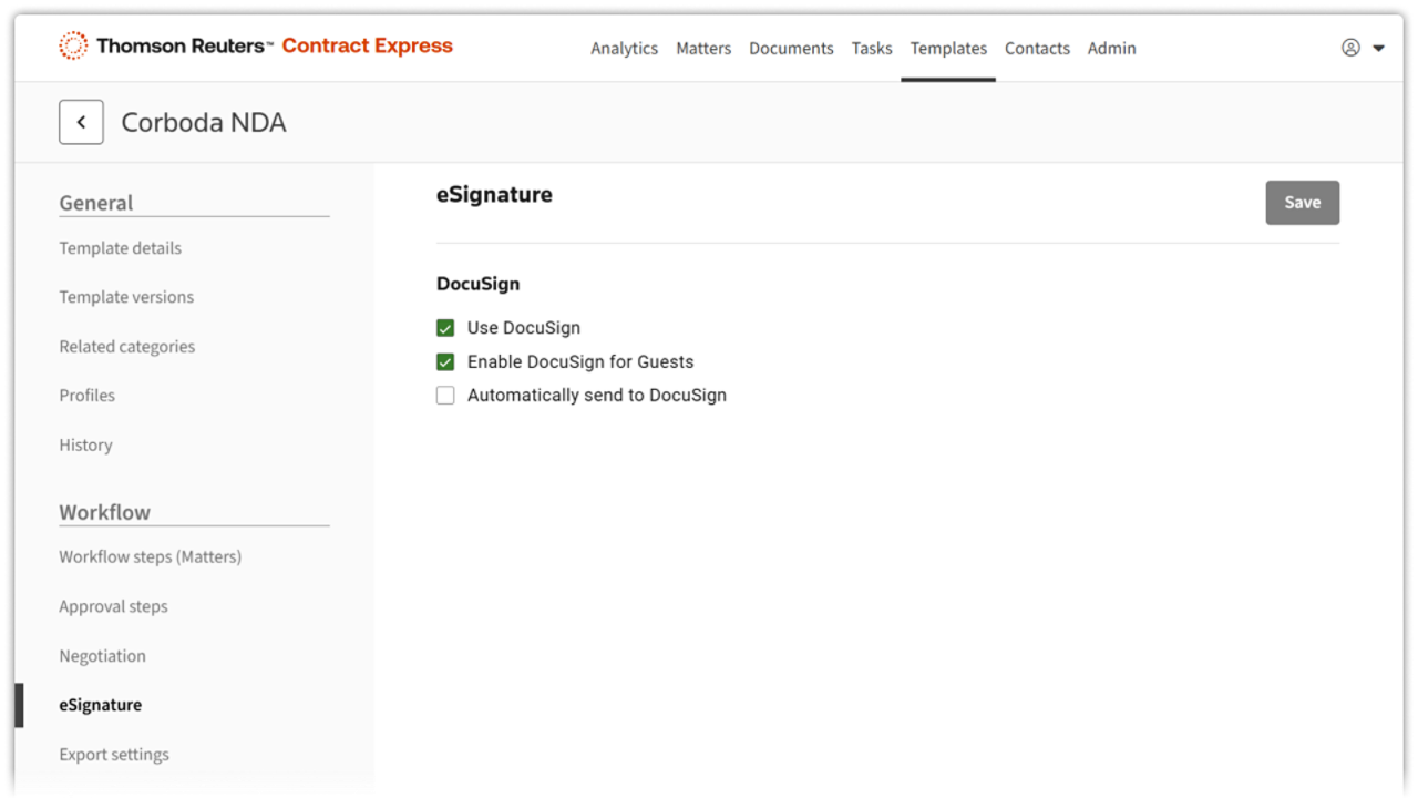 - DMS integration: Complete your document management process by connecting your iManage, NetDocuments, SharePoint with your instance of Contract Express.