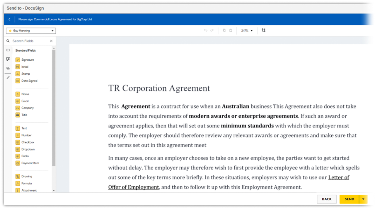 - E-signature integration: Streamline contract approvals with built-in e-signature integrations - AdobeSign and Docusign - ensuring faster execution.