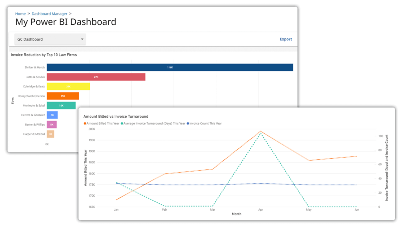 - In-depth legal financial review: Gain insights into matter status, spend and firm performance, with comparative data against other corporate legal departments for better financial management.