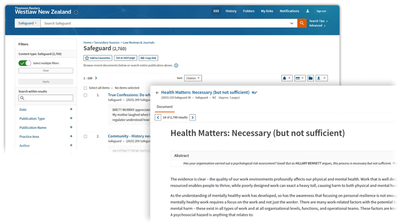 Safeguard Update is the weekly news bulletin covering the latest developments in workplace health, safety and wellbeing in New Zealand, featuring interviews with newsmakers supported by analysis and commentary from a wide range of experts. Includes coverage of developments in Australia and the United Kingdom, where relevant to New Zealand practitioners.